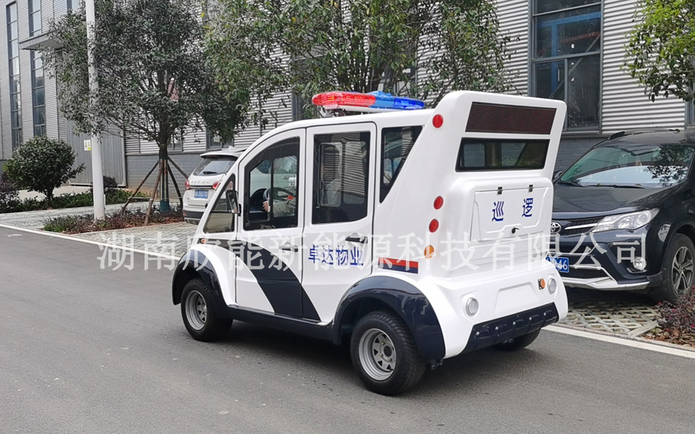 下面此輛電動巡邏車為帶門的5座電動車,內(nèi)置整套警務(wù)系統(tǒng),后方帶顯示屏,能展示標(biāo)語,宣傳活動等文字信息。